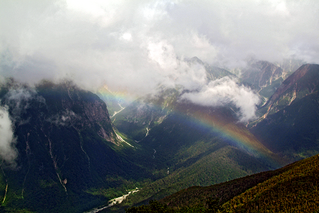 2006年8月、蝶ヶ岳から撮りました。屏風岩にかけて虹が架かっていました。