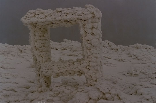 1981年3月、息も絶え絶えに山頂に着いた時、猛烈に落胆しました。そこそこ高さのある山頂小屋全体が、すっぽり雪に埋まっていたのです。ここまで来たのに下山しないといけないのか?しかし、写真の右側の煙突みたいなものが冬季用の入り口と分かってホッとしました。しかし、この冬季の出入り口は、アホほど狭く、荷物を小分けにしないと通れないのですよ。して、時間をかけて雪を掘りおこし、小屋から外界へ道を作りました。(写真はタチゲ)