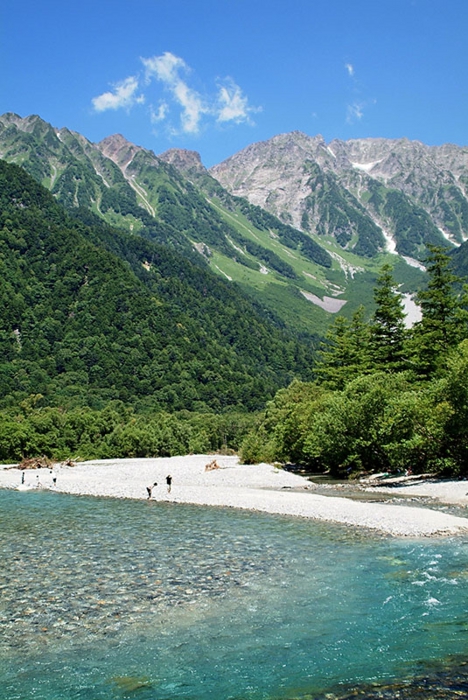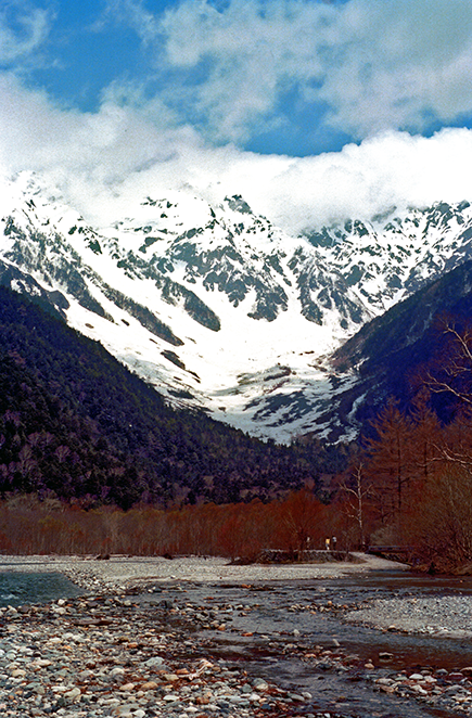 就職した際、名古屋で、長い間、新人研修をしてもらいました。ゴールデンウィークになると、他の人達は、家に帰ったり、遊びに行ってしまいました。私はと言えば、長らく考えた後、一人で上高地に行くことにしました。そして、河童橋付近から穂高連峰などを撮りました。ああ、寒かったわー。道の脇にも結構雪が残っていましたね。