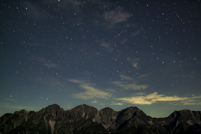 2006年に鏡ヶ成から撮った星達。烏ヶ山のシルエットが美しいのですが・・・現在はご覧の通り、光害のため星空はまるで駄目夫君ですねぇ。