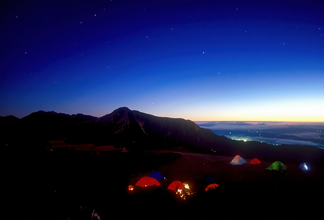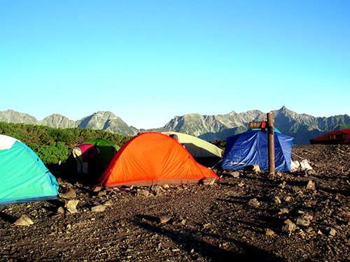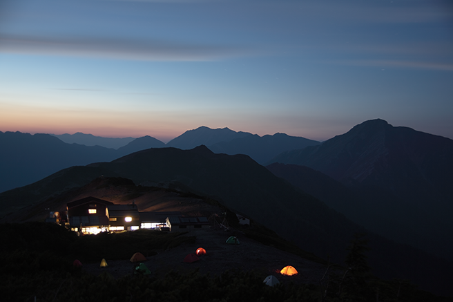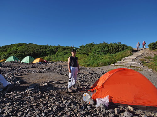 2007年に撮った蝶ヶ岳のテン場。何となくノースリーブでいました。分かってはいましたが、ひどい火傷状態になりました。高山の紫外線を舐めていると、とんでもないことになります。ある年は、耳の皮がぼろぼろに。ある年は、唇の皮がベローンと剥がれました。シミも1日で出来てしまいました。