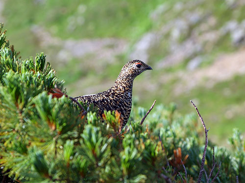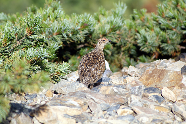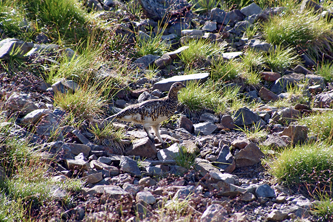 2005年に蝶ヶ岳でとった「雷鳥」 近づいてもなかなか逃げませんよ。ある年は、ヒュッテに向かう道を平然と歩いていました。