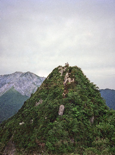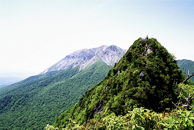 1977年の烏ヶ山。これは、アブノーマル○○君のハーフ版のカメラで撮ったものだったと思います。ザックが小さかったから行けますが、結構怖いですよ。烏ヶ山と言う名前の通り、烏のクチバシのようにピークが二つあります。2000年の鳥取県西部地震で、見えていない、手前の第一ピークがかなり崩落してしまいました。何年も登山禁止となっていましたが、どうやら最近OKになったようです。