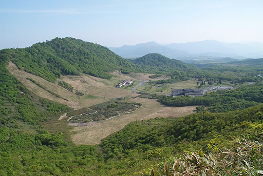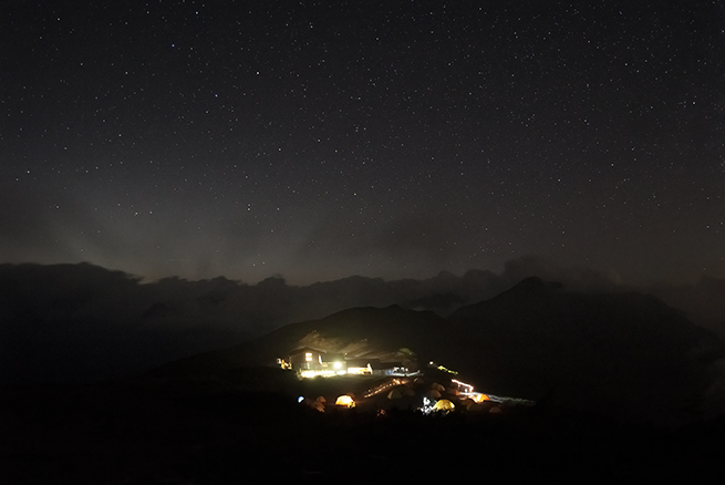2008年に撮った鏡ヶ成全景。象山の登山道から撮りました。今では、街灯が沢山ついてしまったり、国民休暇村の明かりがすごいので、かつての星空を見ることは出来ません。しかし、写真の左の方に写っている、鏡ヶ成湿原の木道に行けば、そこそこの写真が撮れます。