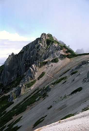 2001年夏に、蝶ヶ岳登山のトレーニングのために、鳥取県の大山に登りました。この写真は、ペンタ67で撮ったものです。解像力にビッツラしたものです。にしても、大山って、何てもろそうな山肌をしているのでしょうか。