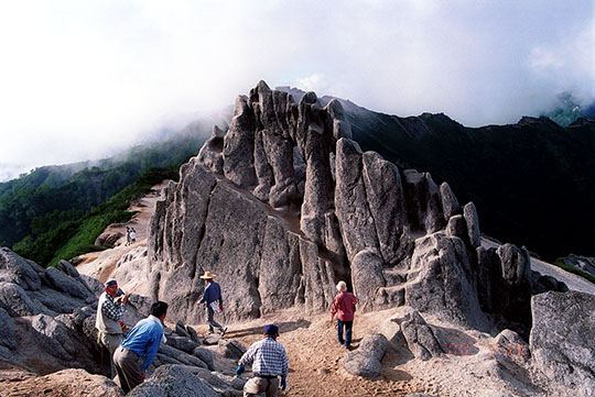 2005年8月に撮った大山縦走路。もう崩落が激しいったらありゃしない。上の写真の真ん中あたりにある「ラクダの背」は存在そのものがなくなりそうになってきています。現在、縦走は基本禁止です。