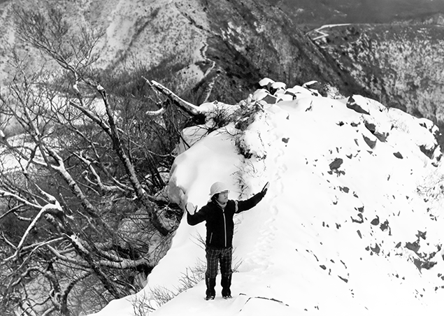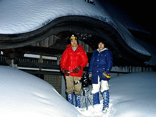 1981年3月の大川寺付近にて。ギシュッ、ギシュッ。春の息吹など到底知らぬ山の冷気に、僕らのアイゼンのきしむ音だけが溶けていく。この大川寺の前あたりからは、腰まで雪に埋まってのラッセルだ。凍える寒さの中で汗だくになる。・・・雪に埋まって星を見るって、何か夢だったんですよねぇ。アマチュア天文家の藤井旭氏の記事の影響でしょうかねぇ。
