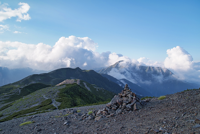 2007年8月、蝶ヶ岳から多分10mm超広角で撮った風景。思い起こすと、2007年は天候にも恵まれ、結構良い?写真が撮れましたねぇ。