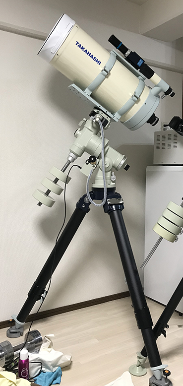 その上の望遠鏡となると「高橋製作所のTOA130S」になります。口径13cmのすんばらしい望遠鏡なのですが、鏡筒自体も結構重たいのですが、赤道儀も含めて他のパーツが重いのよ。ですから、おいそれと遠征に持って行けないんです。