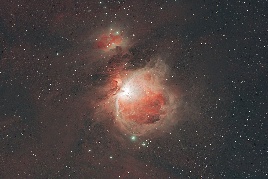 FF80-APO鏡筒を使って、大山の麓で撮ったオリオン大星雲。この鏡筒、軽くて使いやすいんですよ。もっと、露出やライトフレームの枚数を撮ってやれば、分子雲も、もっとはっきりあぶり出すことが出来たでしょうに。(元データはHDDがブチ壊れたのでなくなっています。)