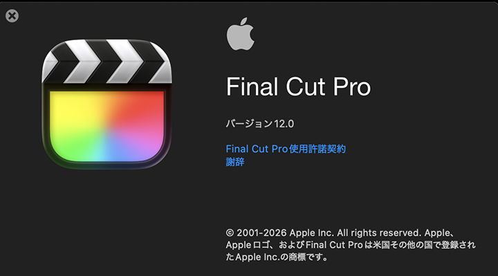 お、そうだ。DVDやBlu-rayを焼く時に使う「Toast 20 Pro」と言うアプリの中に「Live Screen Capture」って言うアプリが入っていたな。」と思い出しました。音声は、そのままでは録音出来ませんので、スタンドマイク?を使いました。フルスクリーンで録画しました。結果、大容量のデータになりました。こいつをまずは、Appleの動画編集アプリの「Fnal Cut Pro」でちょこっとだけ編集しておこう。・・・んん?何とバージョンが12.0になっとるがな。一瞬、日本語の自動文字起こし機能がようやく搭載されたのかと思ったのですが、どうも、そうではありません。正直、何がどう変わったのか分かりません。